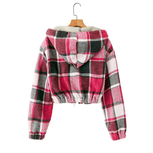 Women's Elegant Plaid Hooded Jacket